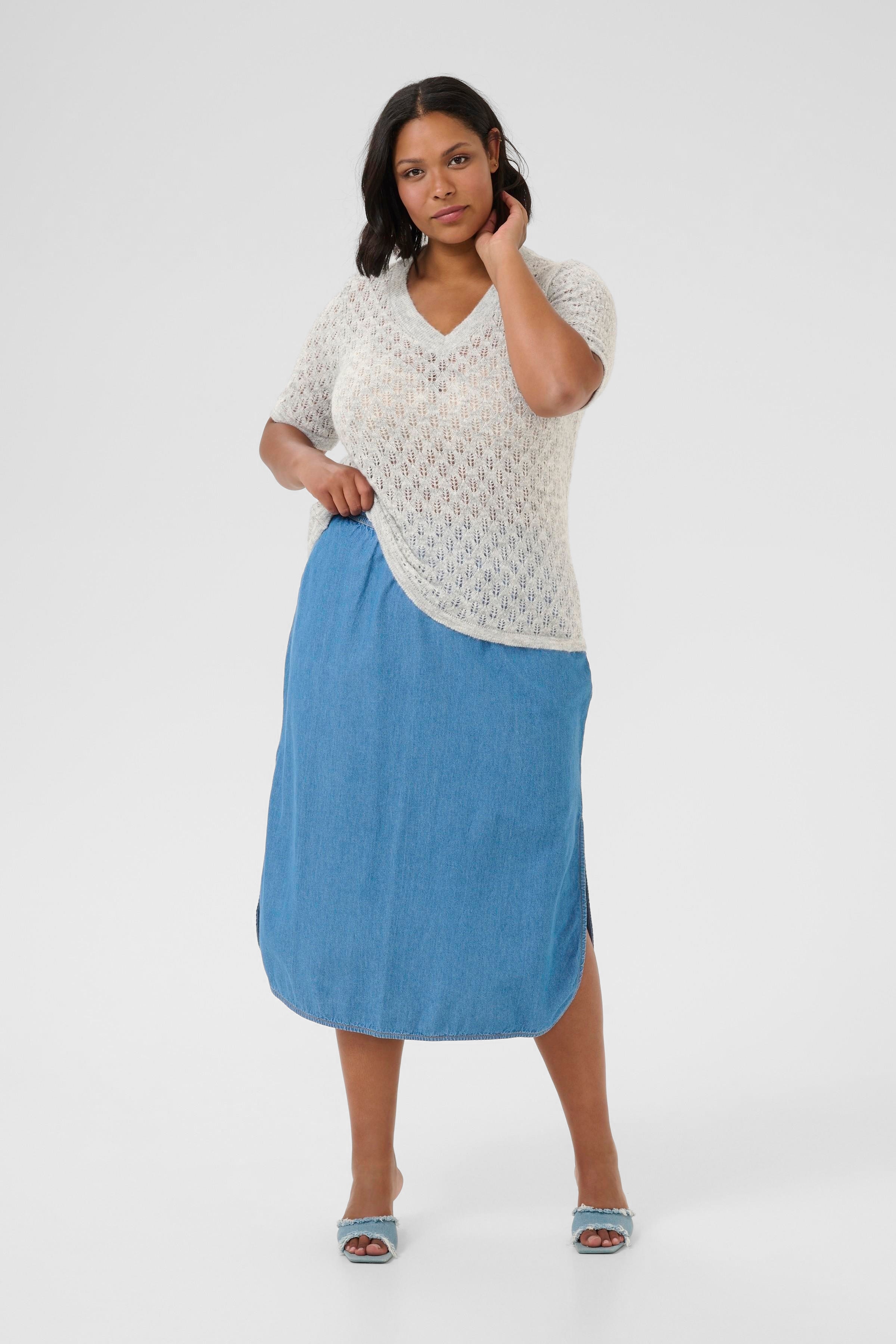 Denne strikbluse til damer har en V-udskæring, løs pasform og korte ærmer med et smukt hulmønster. Let og behagelig til hverdagsbrug eller lag-på-lag-styling. Blød tekstur og flatterende silhuet gør den til et must-have i garderoben.