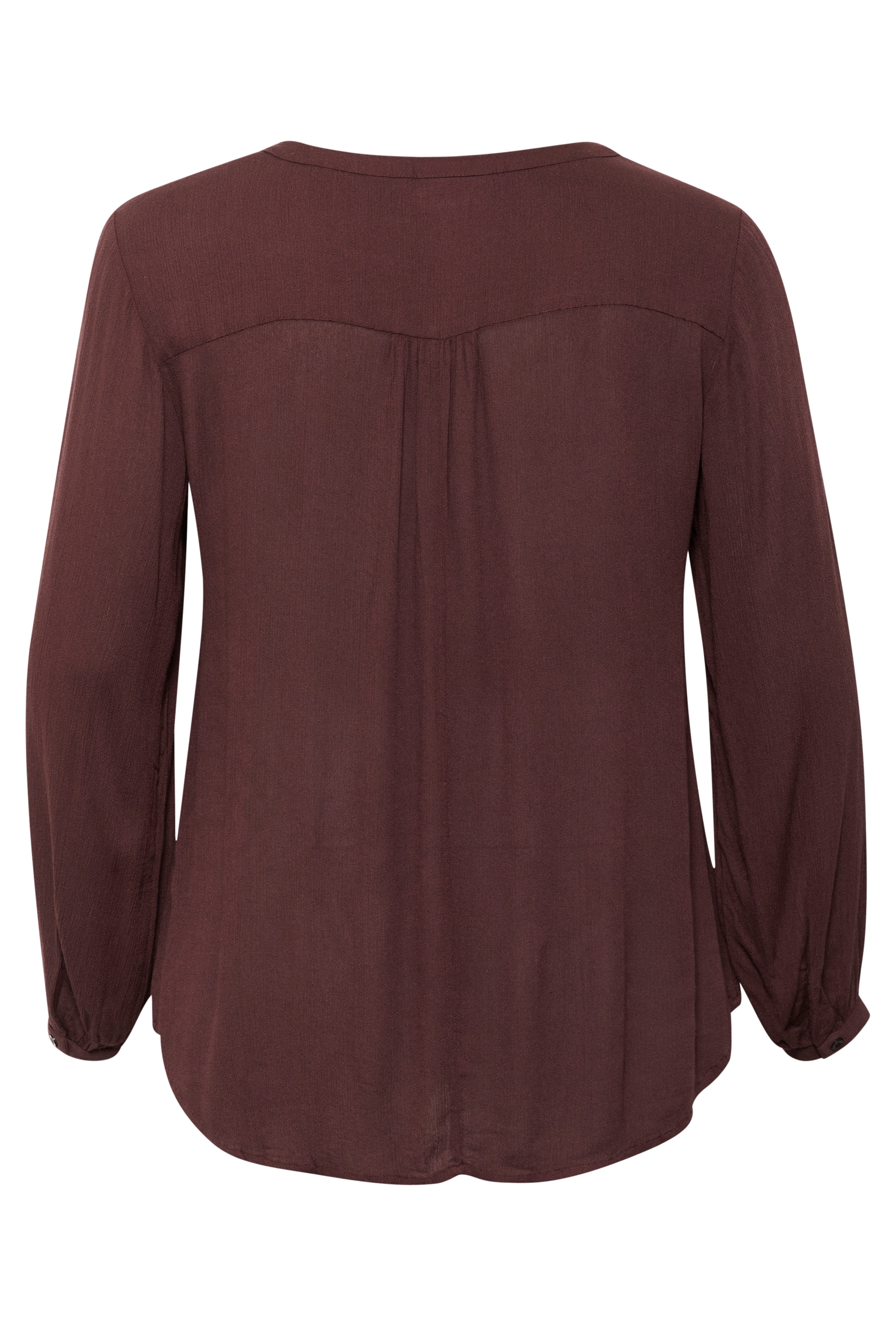 Bluse mit langen Ärmeln, V-Ausschnitt und weicher Struktur. Locker geschnitten mit gerafften Bündchen – für einen bequemen, eleganten Alltagsstil. Das Model ist 175 cm groß und trägt Größe S/44.