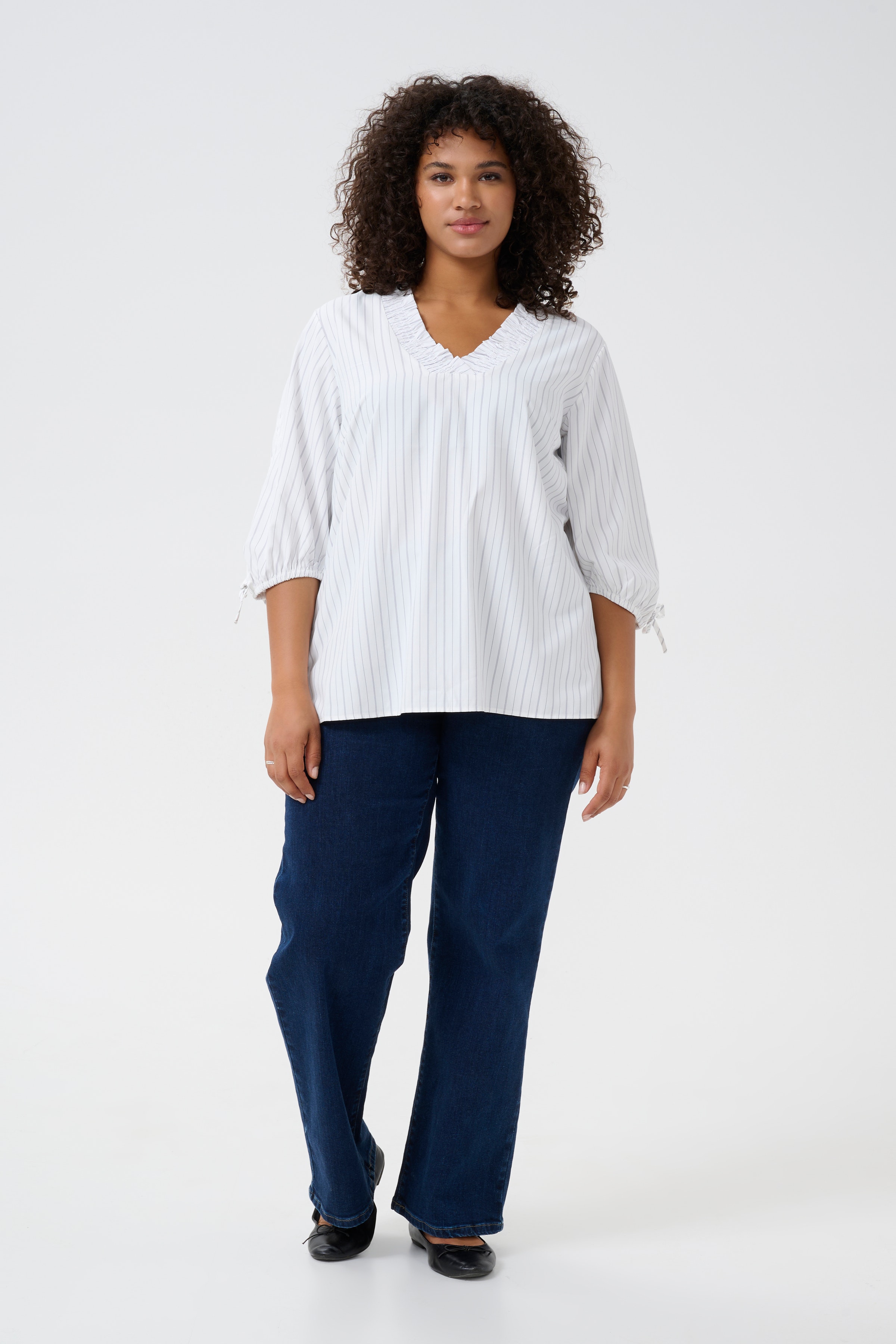 Striped blouse with a relaxed fit and V-neckline, featuring 3/4 sleeves with gathered cuffs. The lightweight fabric and soft silhouette ensure comfort for everyday wear and versatile styling.