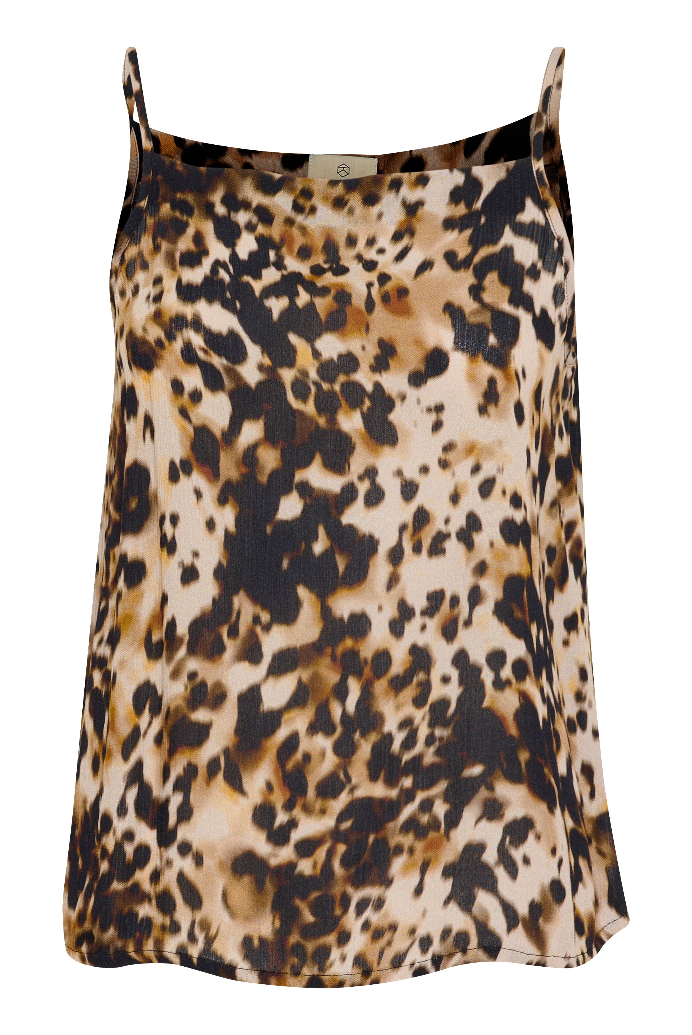 Animal print top with a relaxed silhouette, straight neckline, and slim shoulder straps. Lightweight texture and flowy drape create an effortlessly cool look.
