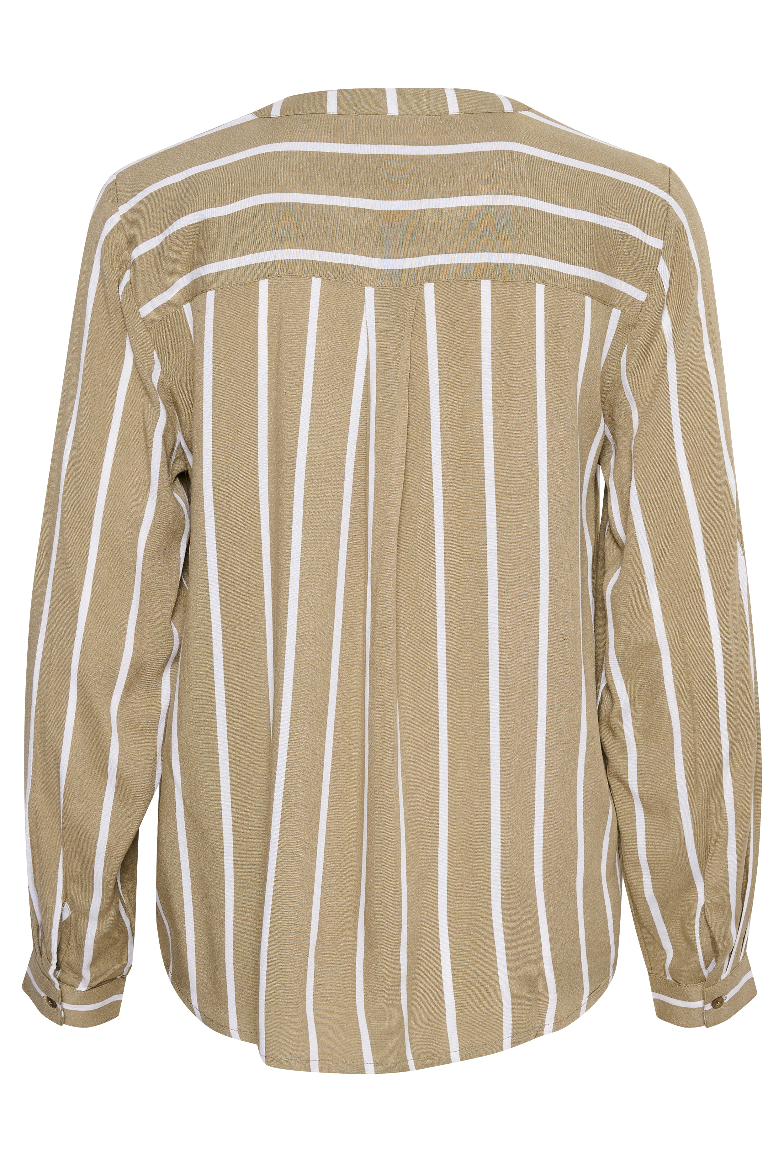 Randig blus med rak passform, ståkrage och V-sprund, lång ärm, knappslå och liggande bröstfickor. Enkla linjer ger stilren känsla.