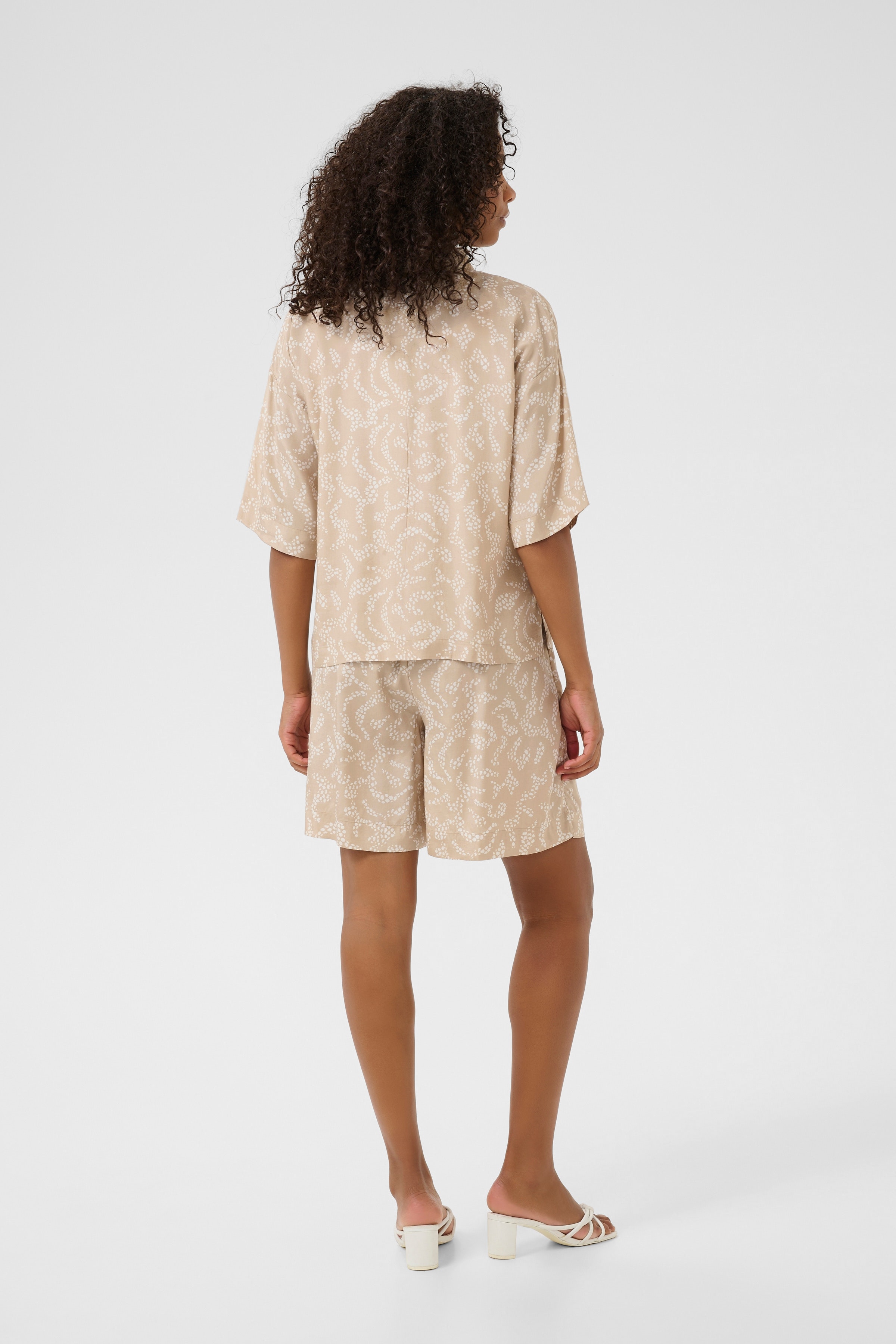 Skjorta med rak, avslappnad silhuett, klassisk krage och knäppning framtill. Vida ärmar till armbågen och ett helhetsintryck av prickigt mönster.
